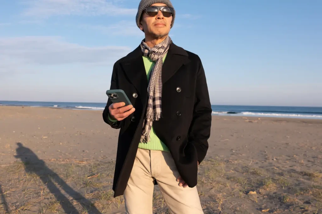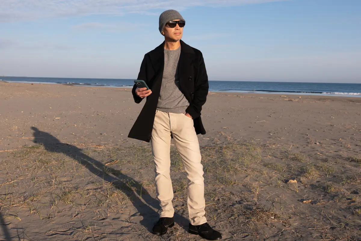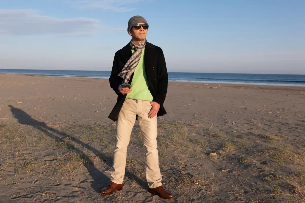 感性や概念的な記事となっていますが、今回紹介したDiorのカシミヤピーコートはアイテム単品としても非常に優れておりスタイリングはもちろんのこと、生地や仕立てのクォリティも超一流ですので、着心地や軽さは当たり前のアイテムです。ただそこにDiorの世界観が入っていますので、他の一般的なピーコートに比べ独自のスタイリングを持っており、厳密に組み合わせをしていくと、合うアイテムと合わないアイテムの差が極端に出やすく、合わせたアイテムによっては悪くはないけどちょっと違うという感覚を持たれるのではないかと思います。(私のLee101Zとの組み合わせです)