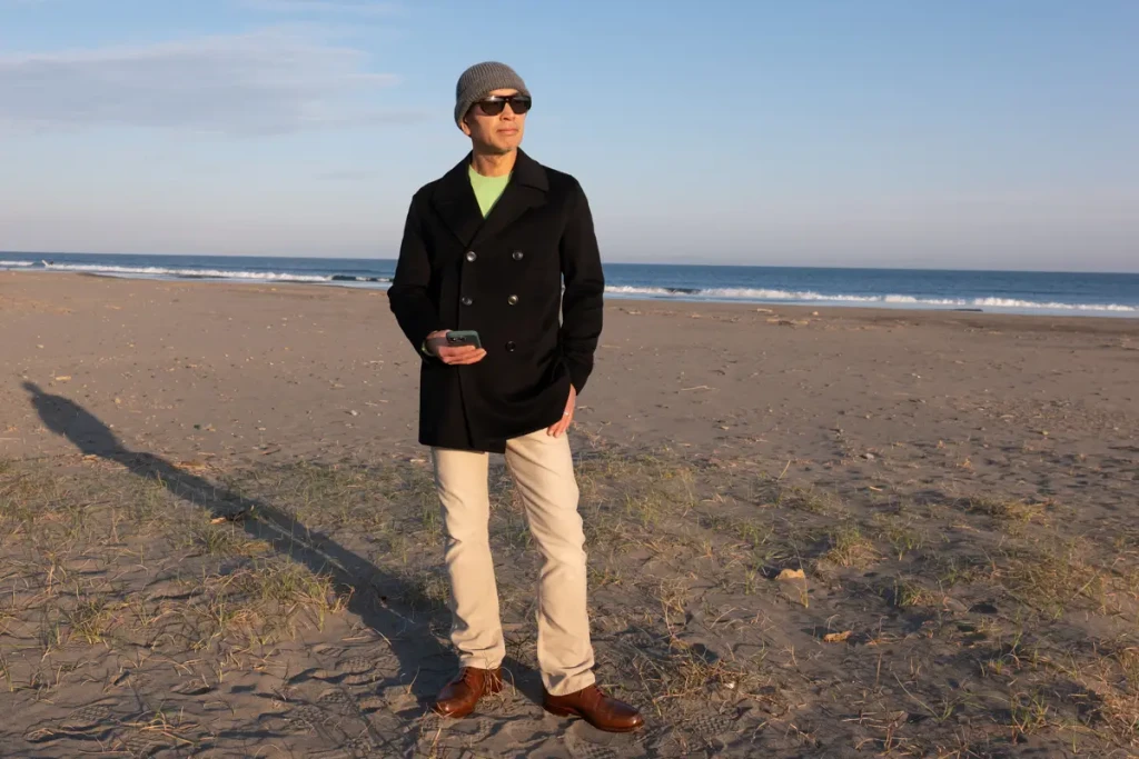 今年は、例年より気温が下がるのが遅く、なかなか冬物を身につけることがなく、12月に入りやっと着るようになります。一度後輩と表参道で会う機会がありその後輩に当日着ていた黒のピーコートと黒のスリムフィットデニムの組み合わせの感想を聞いてみます。この後輩は高身長で細マッチョな体型を活かしTomFordを着こなし男性的なカッコ良さをさりげなく品良くまとめる抜群のセンスを持っています。