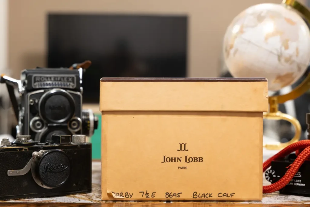 90年代から2000年代途中まで使われていた靴箱になります。靴名、サイズ、ラスト、色、革質が手書きのマジックで書かれているのは、ビスポーク専門の靴工房であり大量生産ではないロンドンのジョンロブの雰囲気が残りどこか手作り感があります。