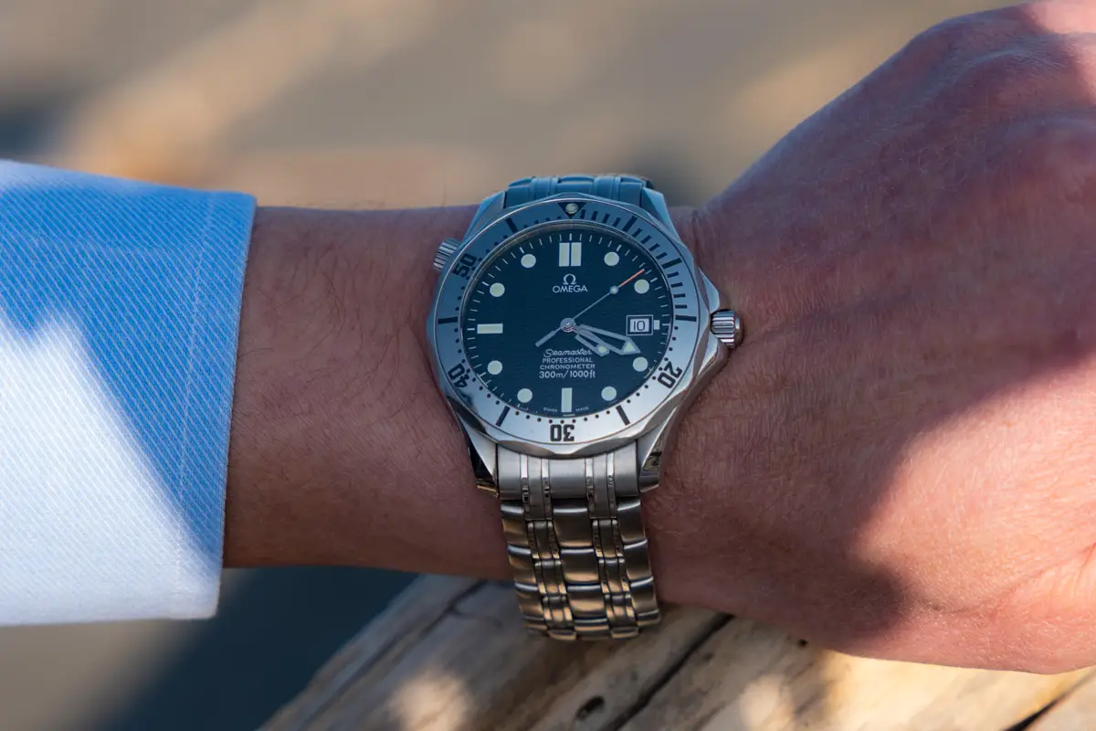オメガのシーマスターは、現行の高級時計のようなアイコニックなイメージが無く、装着したイメージも控えめな事も魅力的です。私のシーマスターは、発売時期が1990年代という、アンティークでもなく、最新でもない年式であり、マーケットで過大な評価になっていない事から、中古市場の価格も高騰していません。