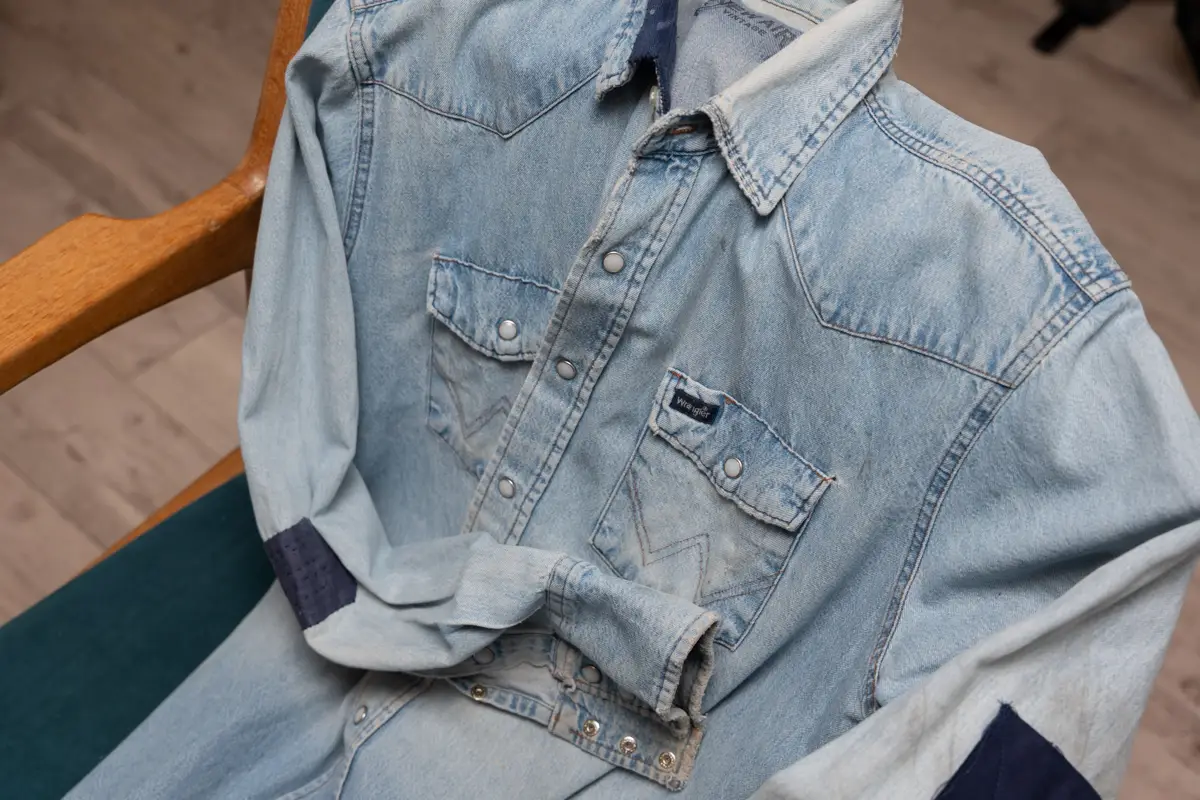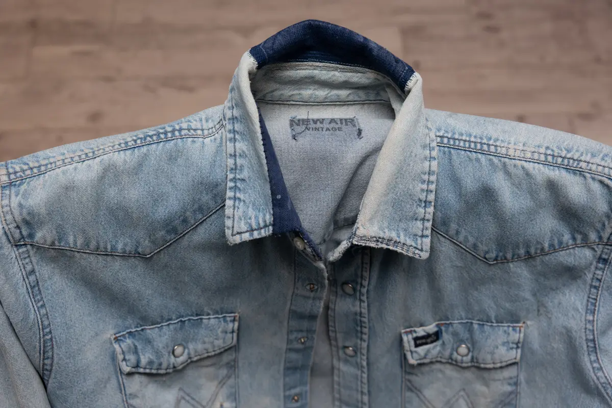 今回紹介するWranglerのウエスタンシャツは、大阪の古着の名店(現在お店はやっていませんがバイヤーをしているそうです)New Air Vintageさんがアメリカから買い付けセンスの良いリペアをしたものになります。